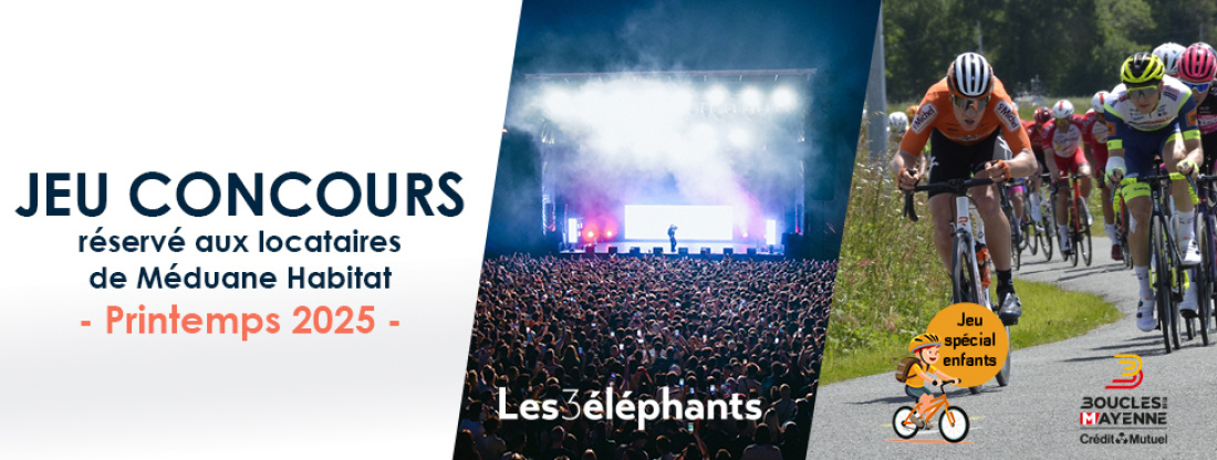Un tirage au sort permettra de désigner les gagnants. Les lots Boucles de la Mayenne seront à récupérer au siège de Méduane Habitat. Les places pour les 3 Eléphants seront envoyées par courrier ou remises par votre gardien.